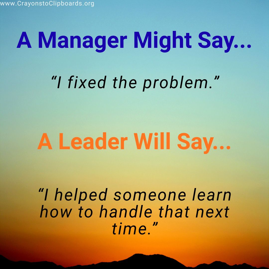 I challenge you to take 10 minutes this week to reflect on your day: write down one moment where you were managing and one where you were truly leading. Then pick one “management moment” to turn into a leadership opportunity.