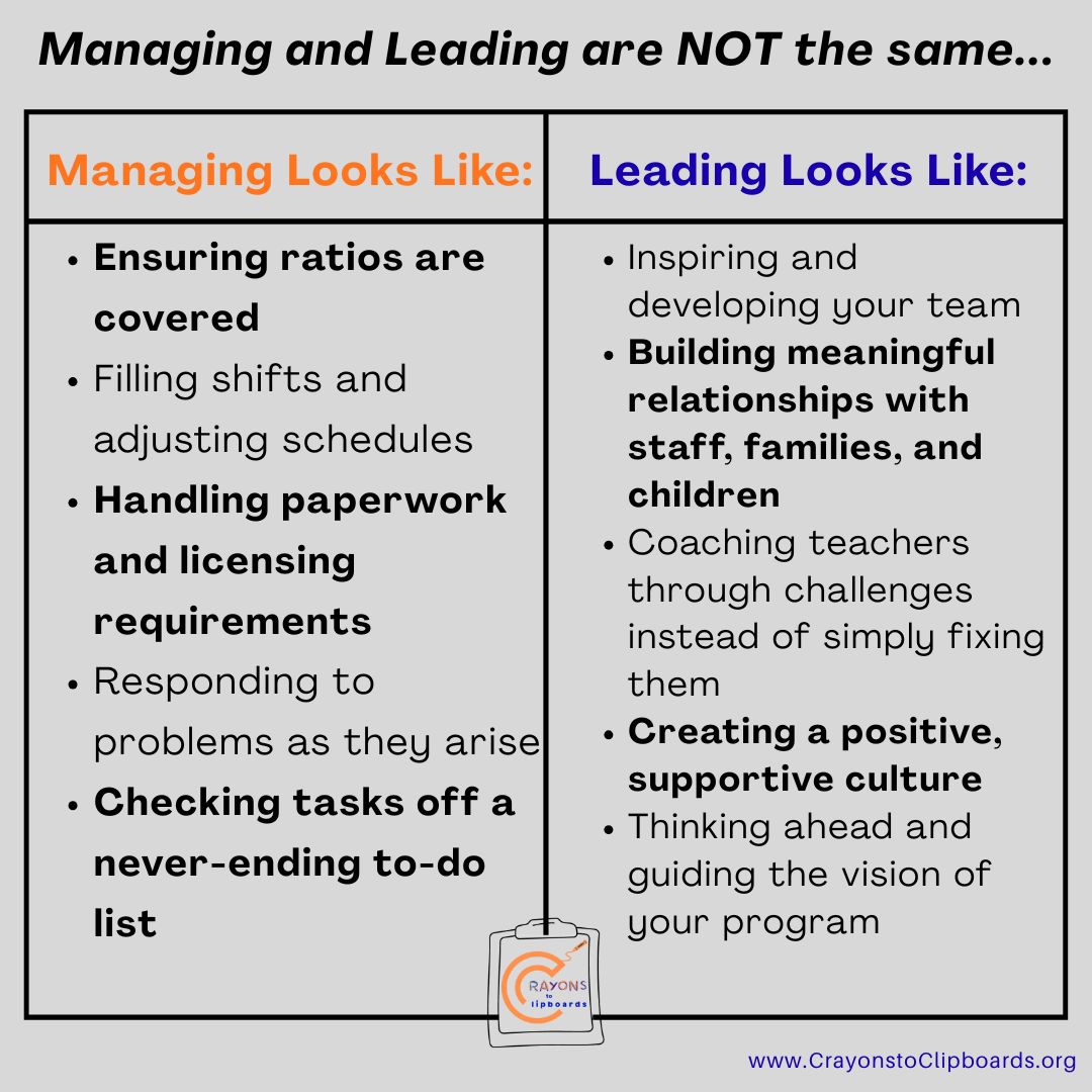 And if I’m being honest, when I first became a Center Director, I didn’t realize there was a difference. I thought if I kept everything running smoothly, checked all the boxes, and made it through each day, I was doing what leadership required. I was managing well, but I wasn’t truly leading yet.