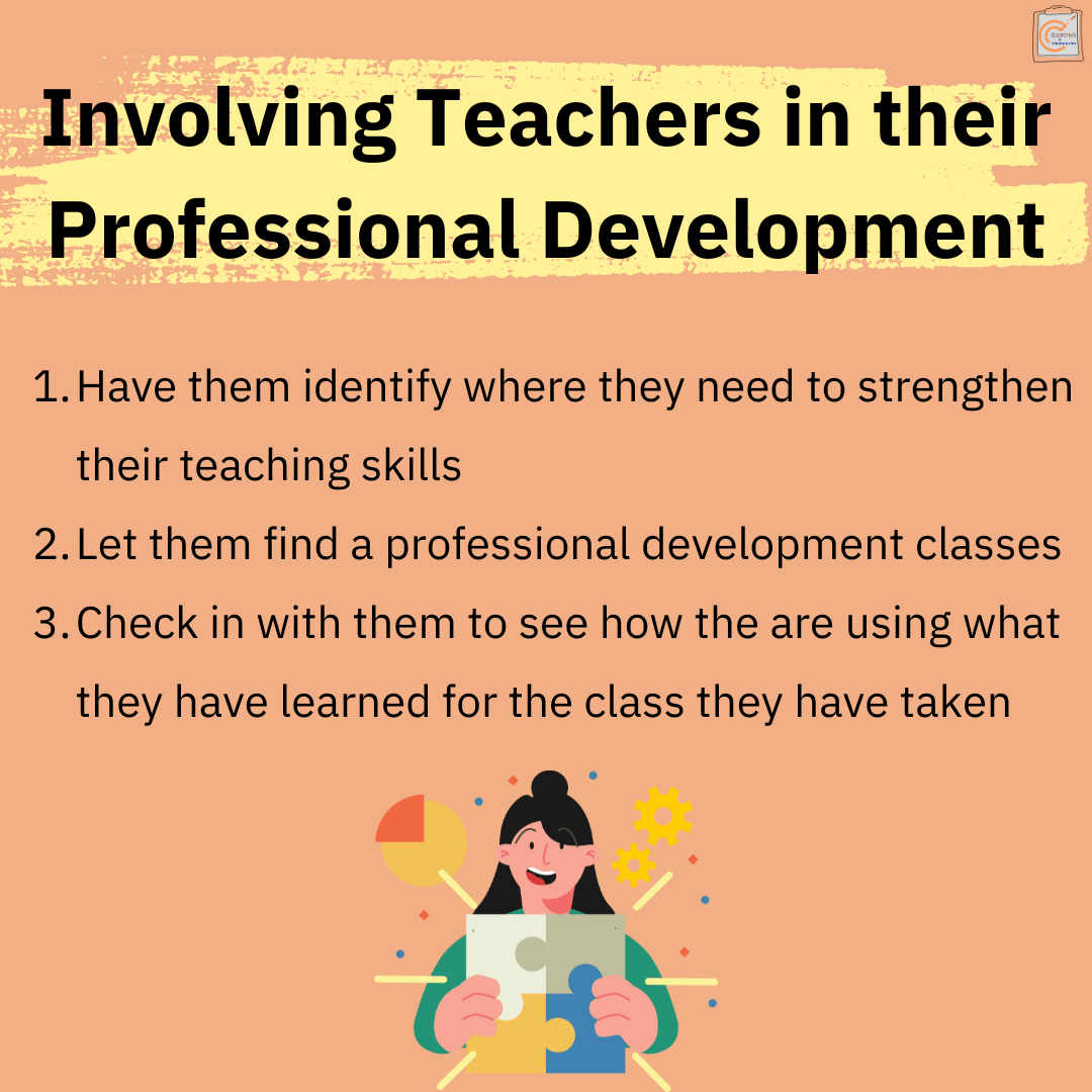Using this strategy, I have now created excitement to learn and implement what they have learned! You can add a new step by empowering employees to share what they learned, and how it is being used within their classroom with their peers at a staff meeting. This also will allow you as a leader to assess their ability to lead others.